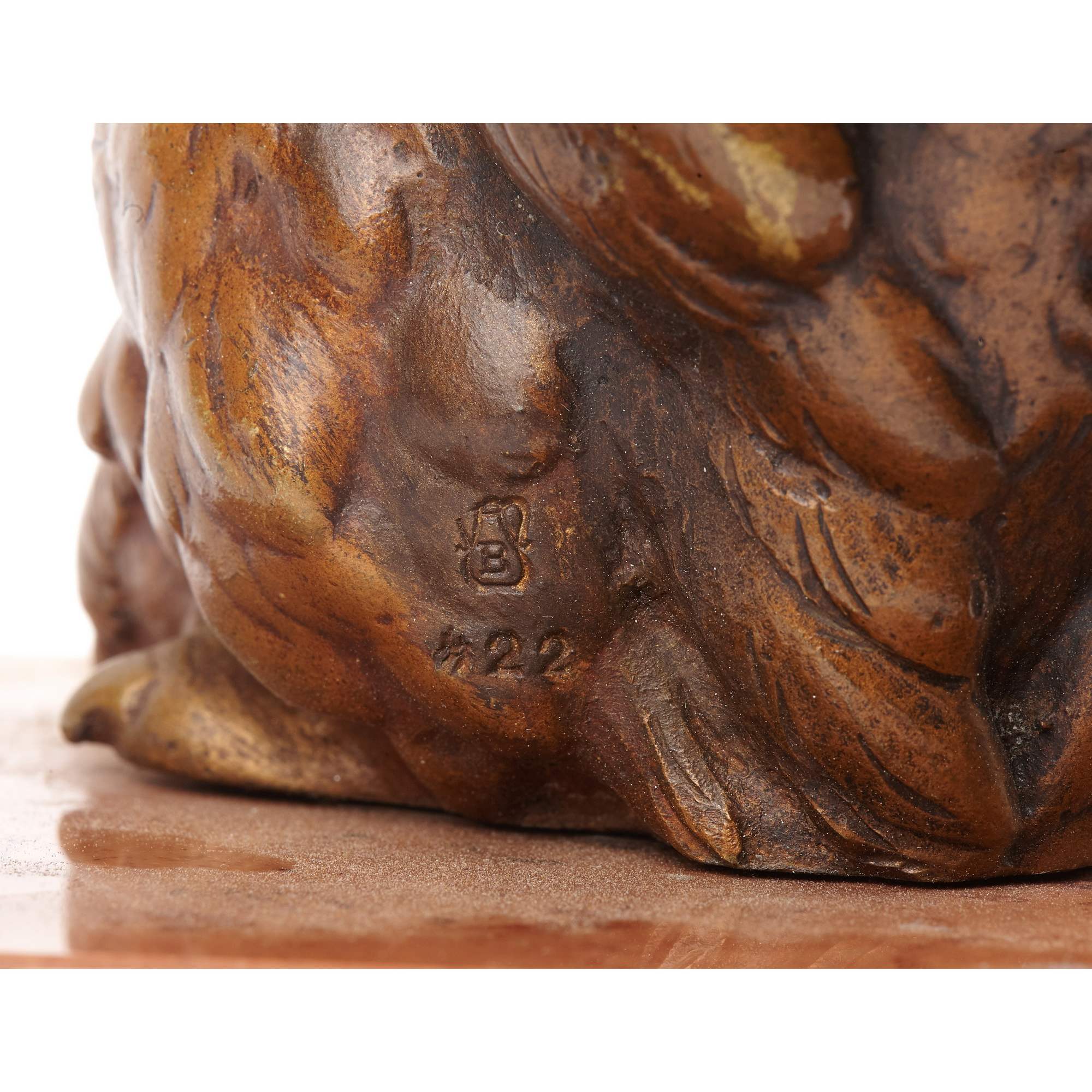 Исполнена статуэтка на знаменитом венском бронзолитейном предприятии Бергмана. Его декоративная художественная бронза отличалась не только разнообразием сюжетов и высоким качеством литья, но и ярким полихромным покрытием, выполнявшимся вручную. Благодаря этому, колорит изделий не повторялся, делая каждое произведение уникальным. Особенно предприятие славилось камерными анималистическими композициями, чья натуралистическая точность вызывала повышенный спрос. Немаловажно упомянуть и хорошую сохранность статуэтки и постамента, что почти не встречается на антикварном рынке. Художественная бронза Бергмана в настоящее время является предметом особенно увлеченного коллекционирования.
