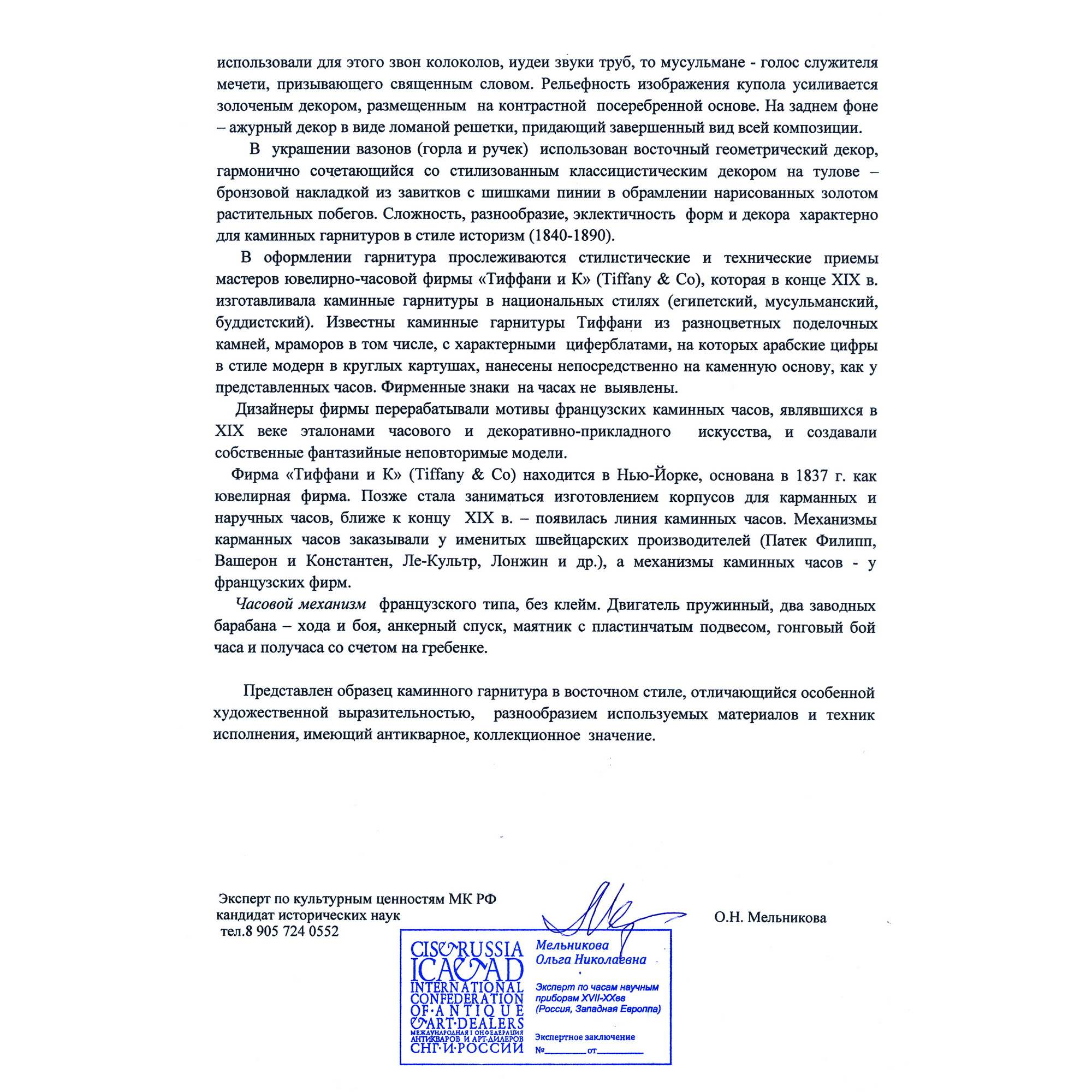 Заключение эксперта по культурным ценностям МК РФ, кандидата исторических наук О. Н. Мельникова.
