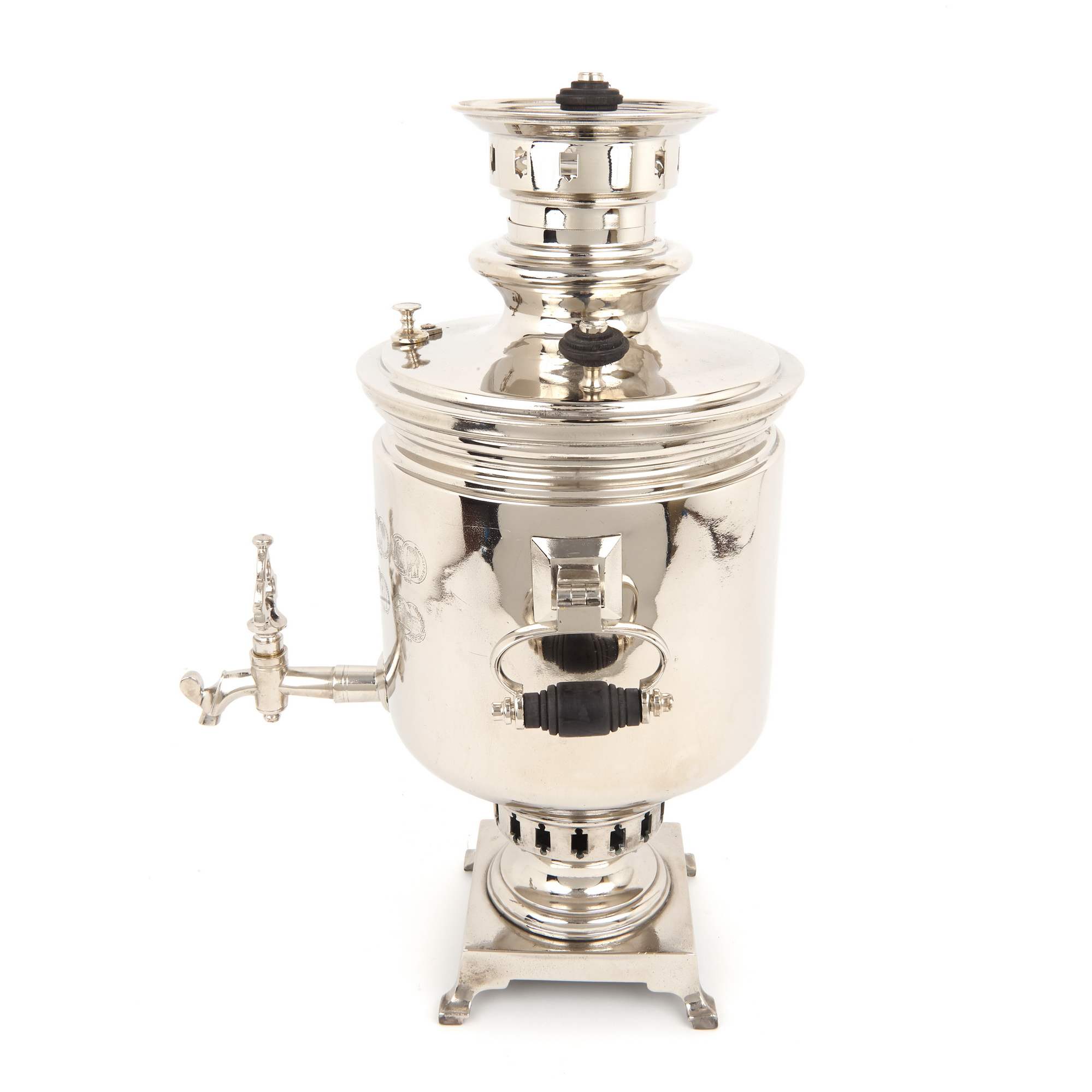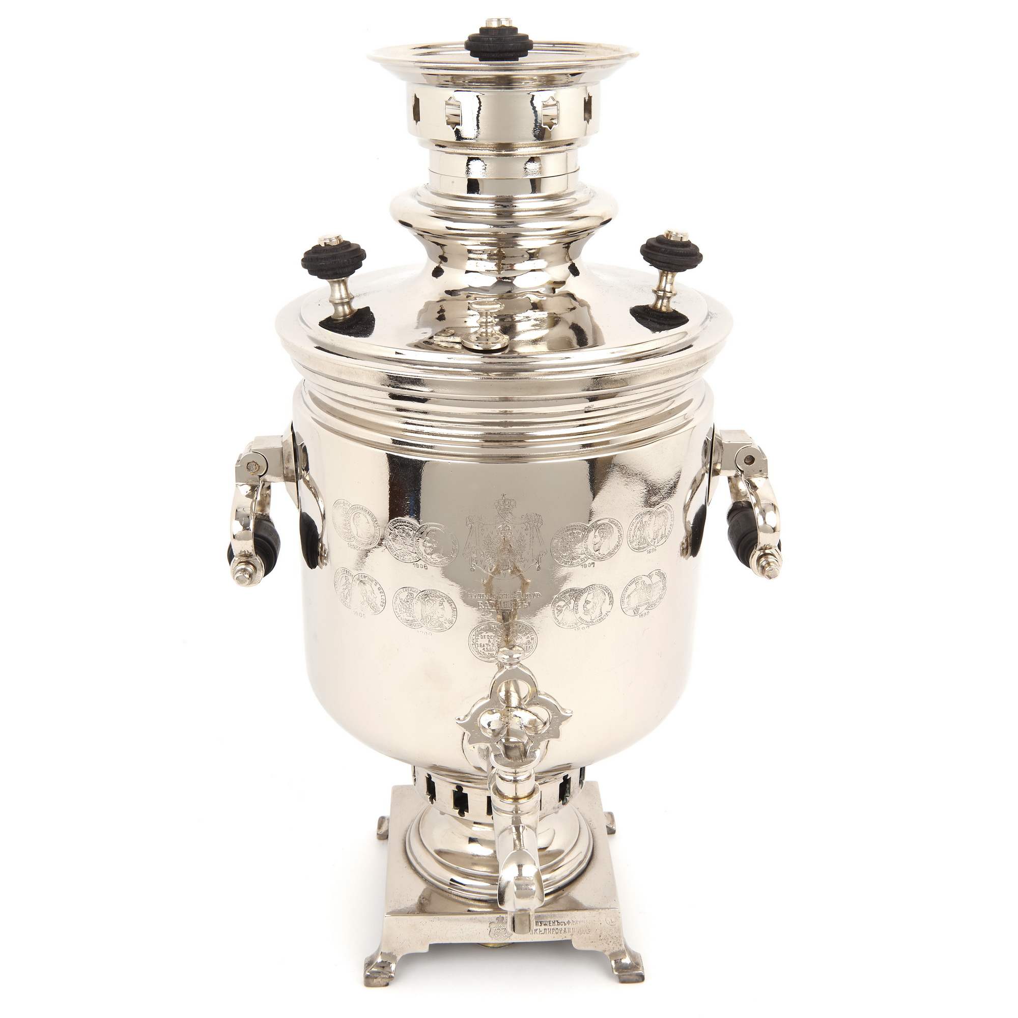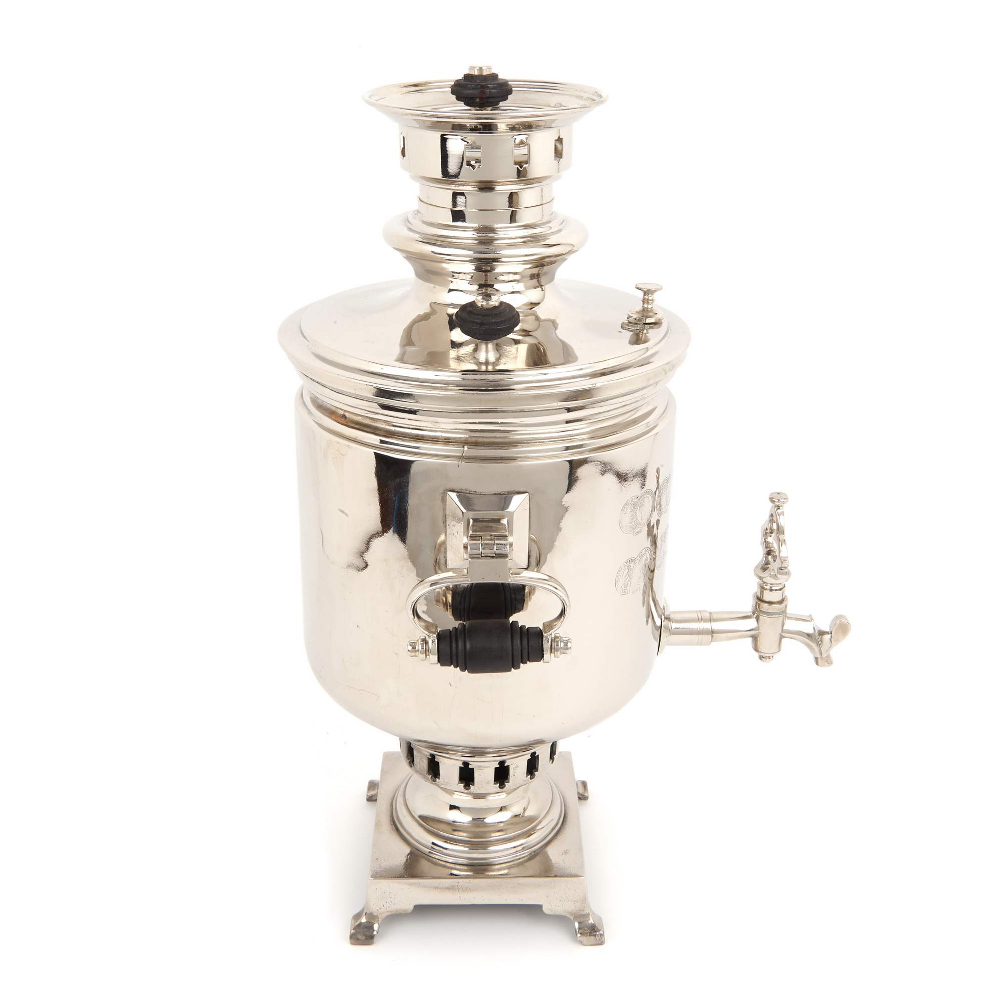 Самовар – это не просто практичный и красивый сосуд для горячей воды, это настоящий символ тепла, уюта семейной домашней атмосферы. Это предмет, превращающий чаепитие в ритуал, наполненный ароматным теплым воздухом и задушевными разговорами. Фабрика Баташевых одна из самых известных производителей самоваров в Российской Империи и СССР. Новое качественное лужение. Никелирование. Хорошая сохранность. Профессиональная реставрация. Полный комплект. Антиквариат.