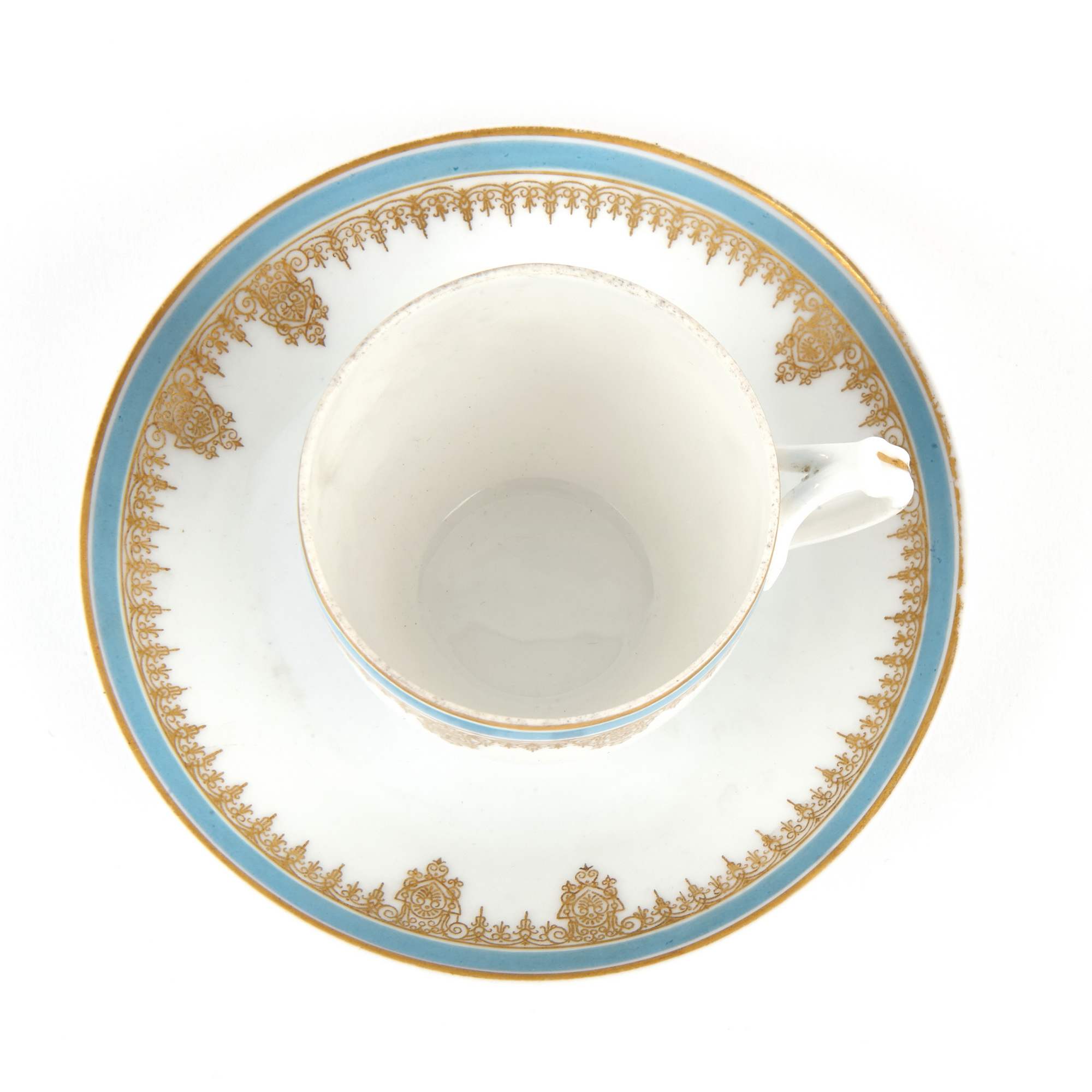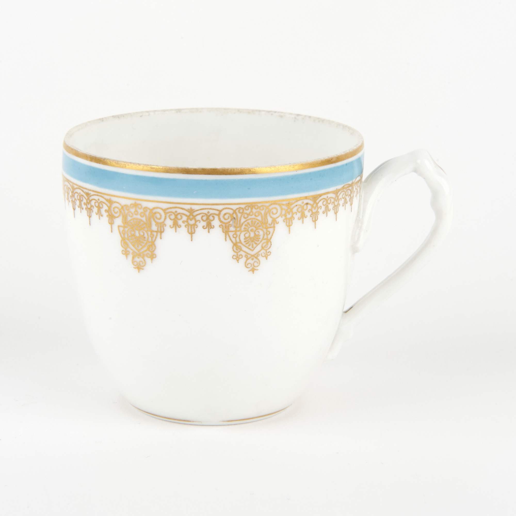 Россия. Дулёво. Завод Кузнецова. Фарфор, золочение. Чашка: Высота - 5,9 см, Диаметр - 6,2 см. Блюдце - Диаметр - 12,7 см.
