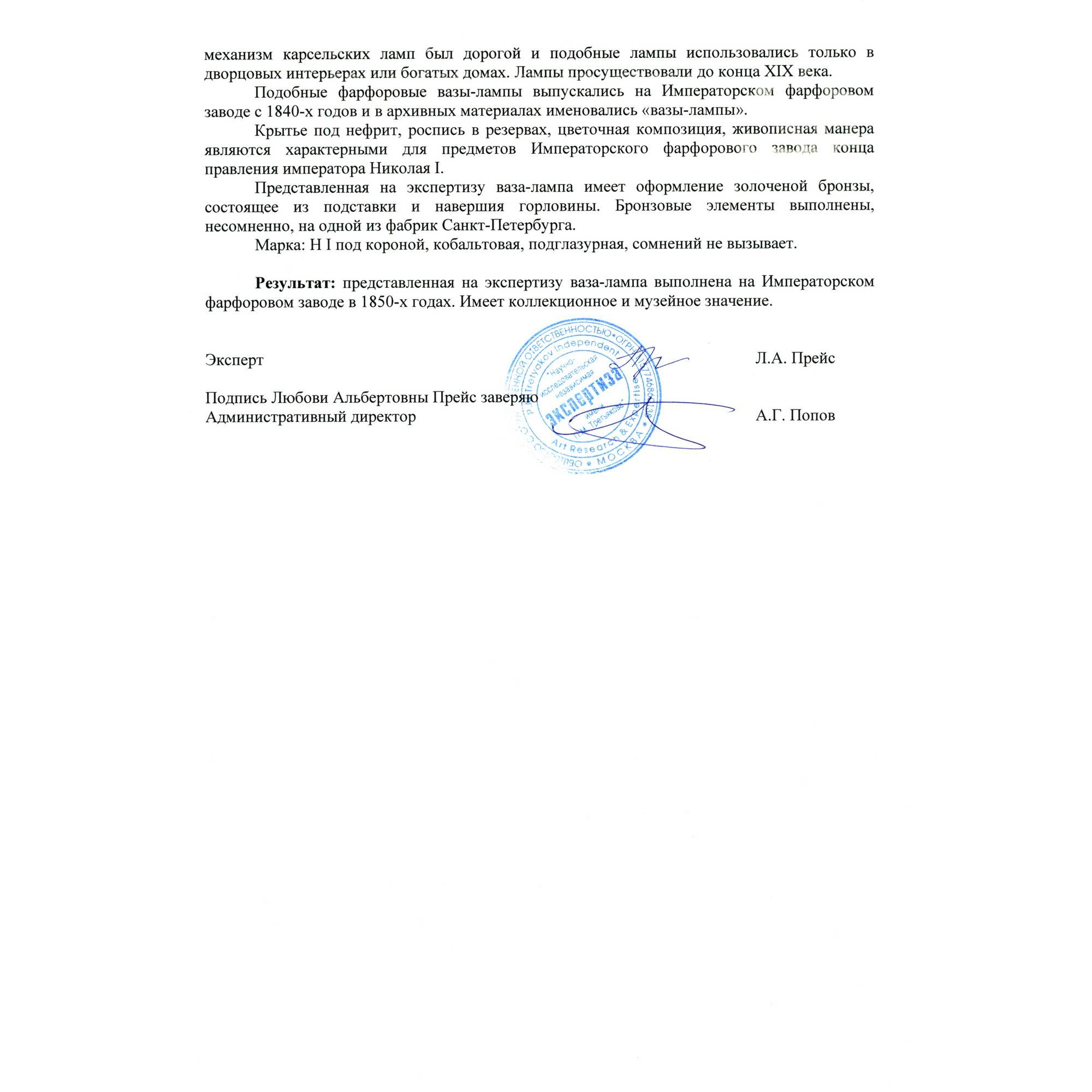 Экспертное заключение НИНЭ им. П.М.Третьякова.