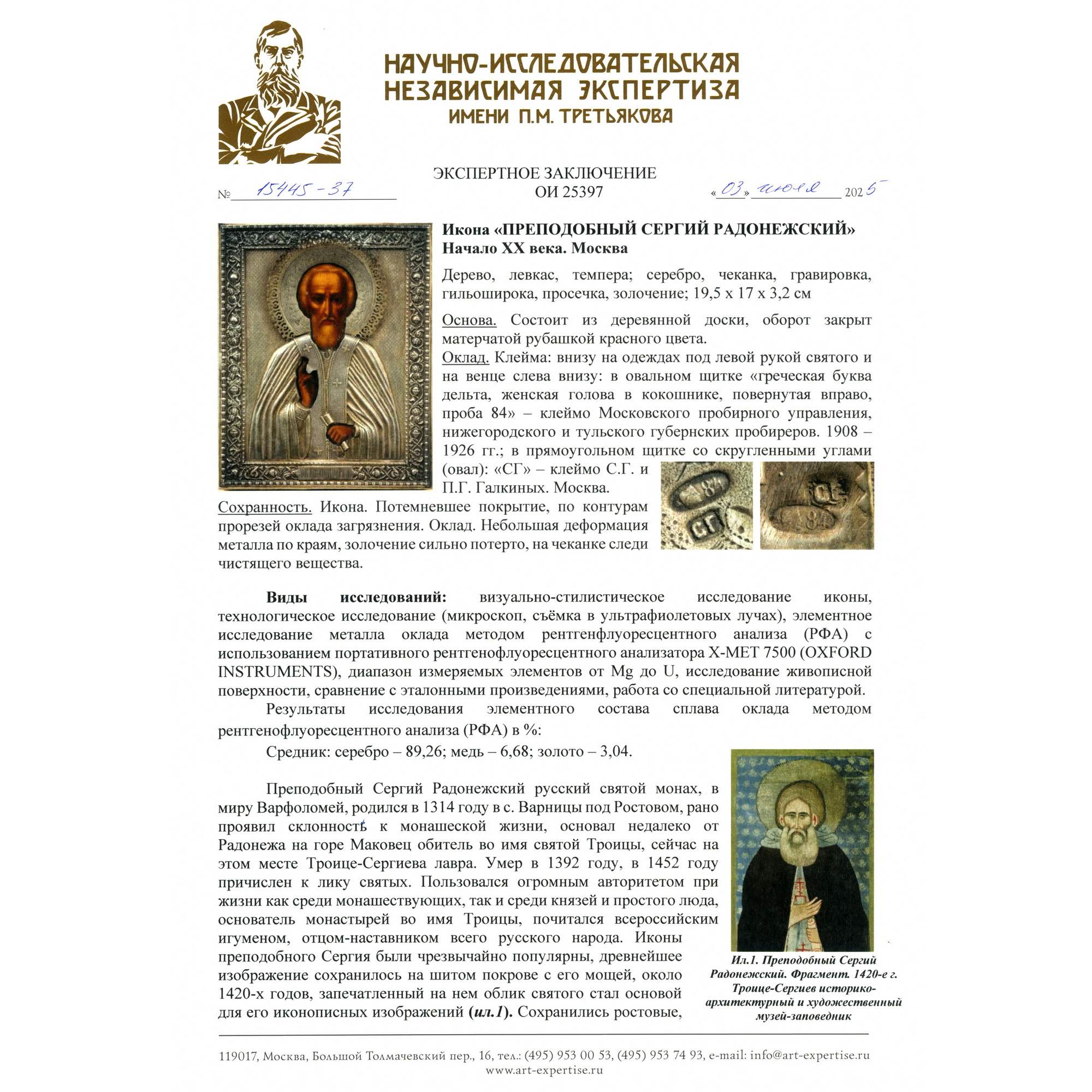 Экспертное заключение НИНЭ им. П. М. Третьякова.