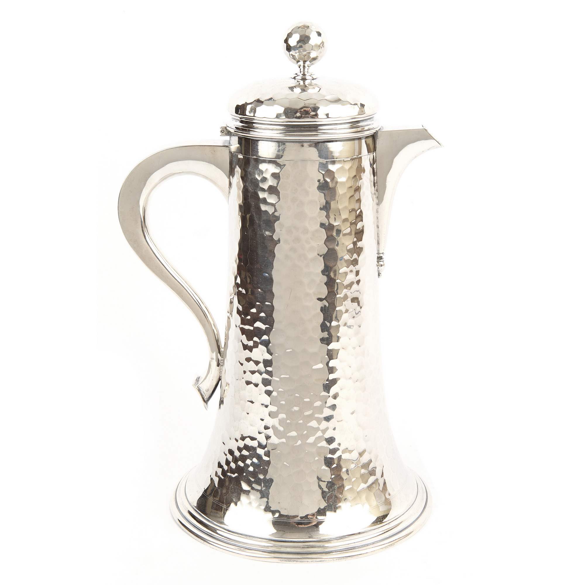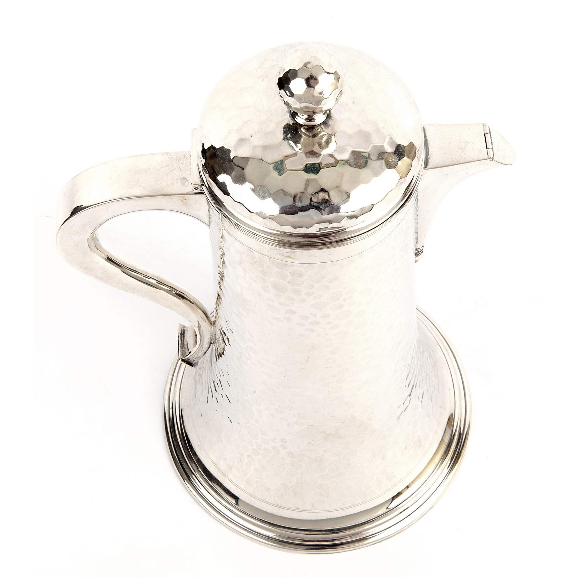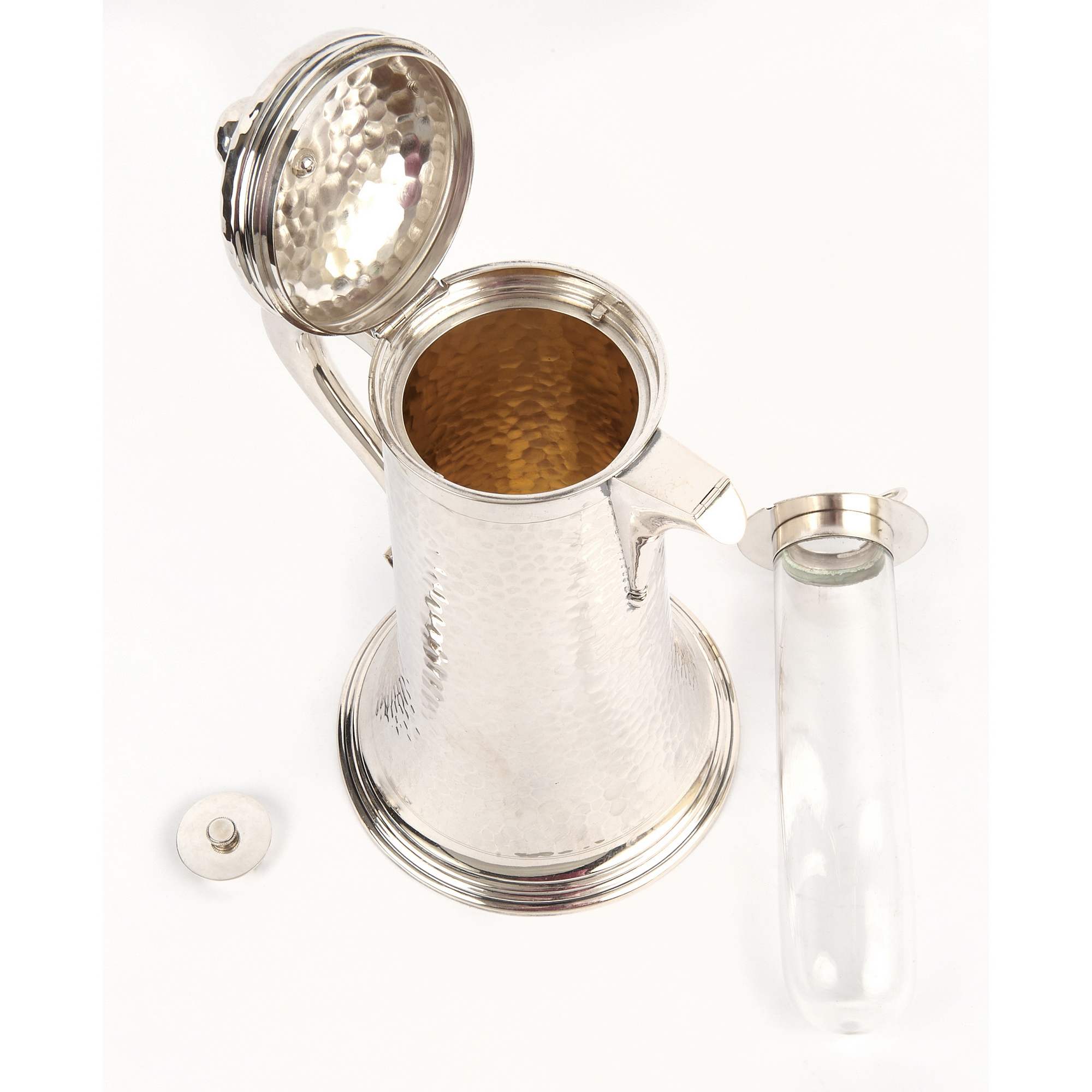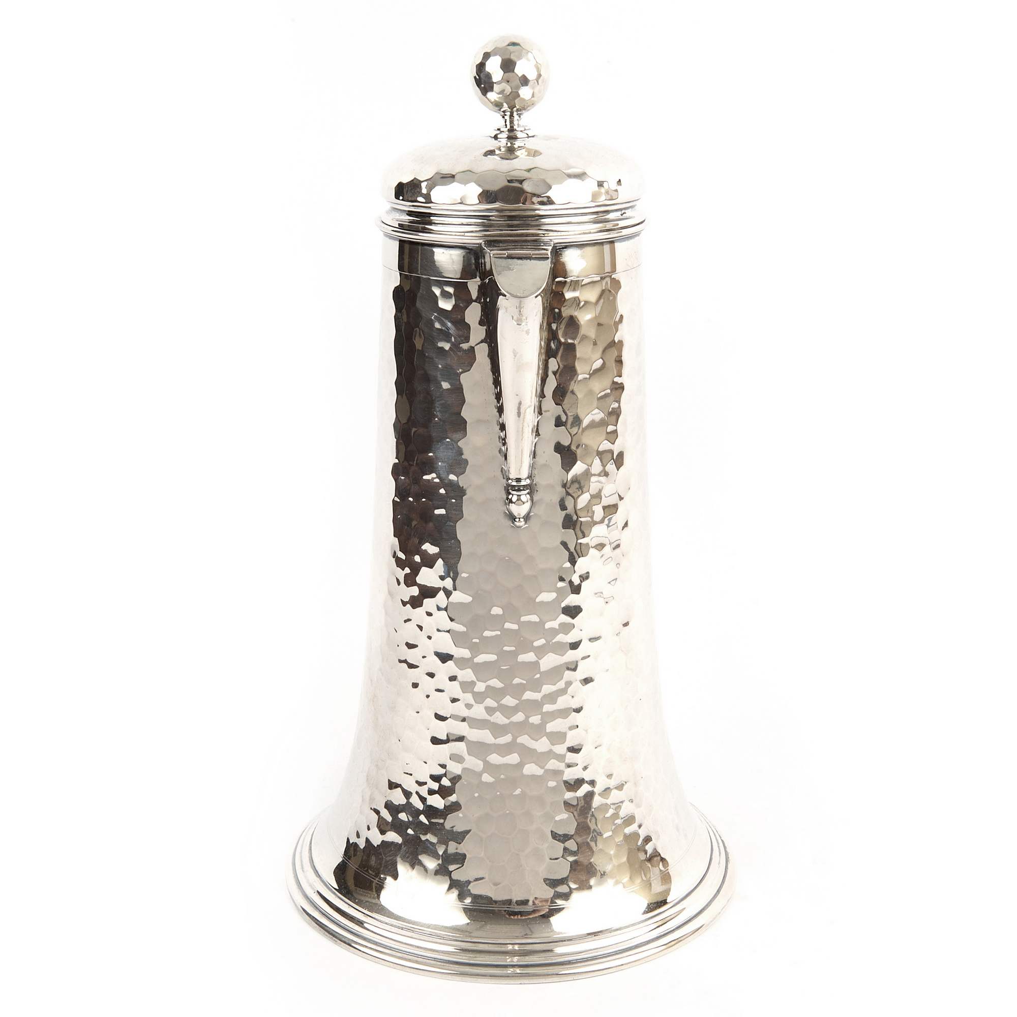 Замечательный, очень красивый старинный серебряный кубок – холодильник, выполненный в Германии в начале XX века на одной из самых известных и престижных ювелирных фирм Германии и даже всей Европы. «Братья Фридлендеры» - личный поставщик Двора Его Величества Кайзера Вильгельма II, последнего короля Пруссии и германского императора, кузена императора России Николая II. Графин пленяет взгляд своей красотой: его лаконичная, однако не лишенная изящества форма сочетается с переливающейся и сверкающей поверхностью прочеканенного серебра. Характерной особенностью фирмы являлось использование традиционных, ручных способов обработки и декорирования изделий, что способствовало сложности, красоте и уникальности произведений. Внутри графина находится великолепно исполненная стеклянная колба в серебряной оправе, в которую помещается лед – так напитки долгое время могут оставаться холодными и свежими. Простое, но очень практичное и удобное решение графина, не лишенное при этом эстетического содержания. Это лаконичный, но крайне изысканный предмет, способный, благодаря своей выдержанности и исключительной красоте, стать частью и украшением любого стола, интерьера или музейного собрания. Редкий образец немецкого модерна (югендстиля), выполненный на знаменитой и популярной ювелирной фирме, поставлявшей свои произведения многим знатнейшим и богатейшим фамилиям Европы. В настоящий момент их изделия находятся в крупнейших частных и музейных собраниях мира. Предмет обладает коллекционным значением, высокими художественными качествами и практичностью. Безупречная сохранность, антиквариат.