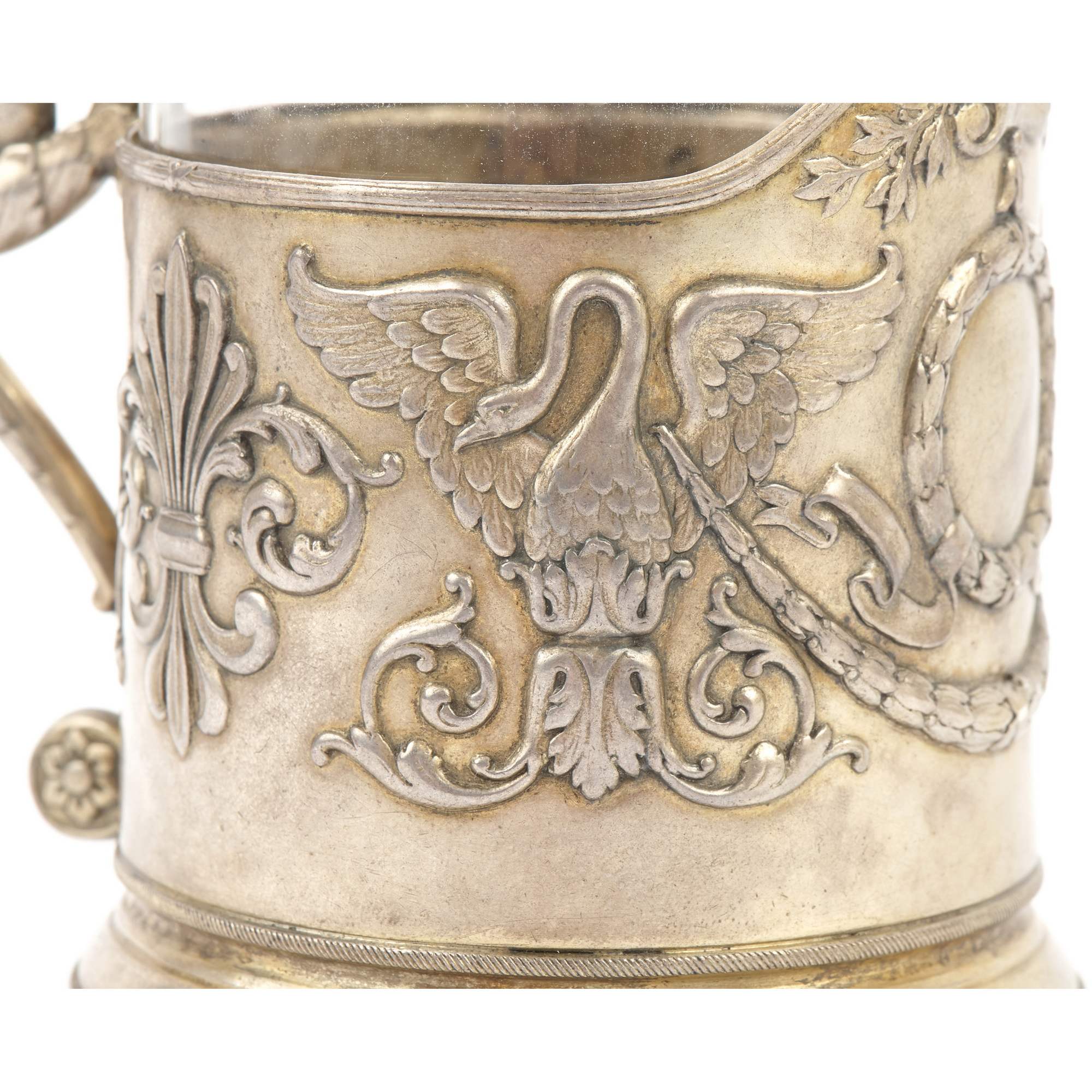 Старинный подстаканник с характерным орнаментом «лебеди». Красивые благородные птицы стали одним из любимых мотивов СССР, часто встречающимся в декоре, в том числе подстаканников. Лебедь символизирует чистоту, благородство, ассоциируется с женской красотой. Хорошая сохранность. Антиквариат.