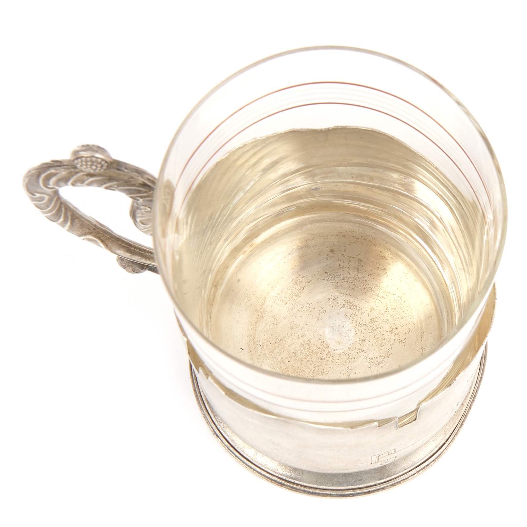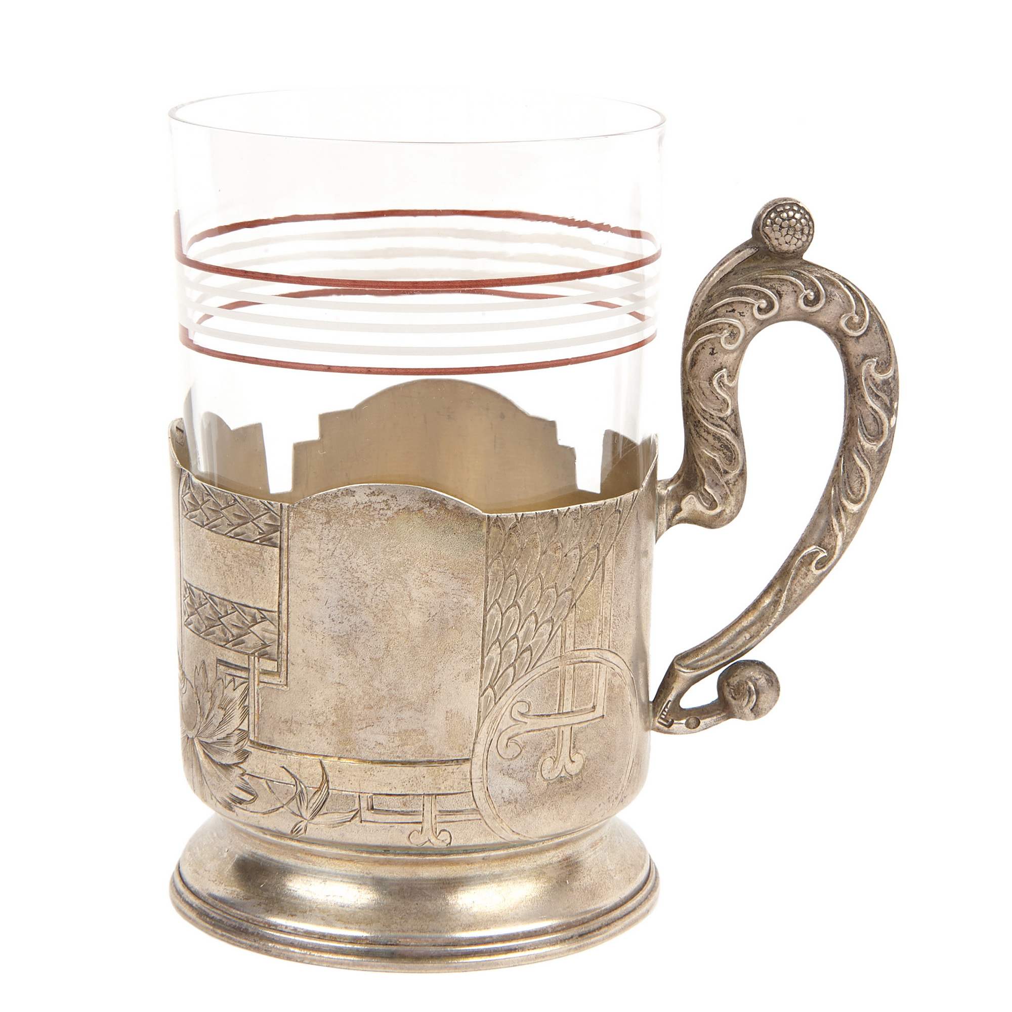 Красивый старинный подстаканник, выполненный известным мастером рубежа XIX и XX столетий, Пуляткиным Василием Ивановичем. Художник являлся владельцем московской ювелирной мастерской с 1883 по 1917 годы. Изделия его фирмы украшают собой крупные музейные собрания и коллекции, например Государственного Исторического музея. Особой популярностью пользовались произведения, выполненные в стиле модерн – в частности, представленный подстаканник с необычной формы геометризированным орнаментом. Хорошая сохранность. Следы бытования. Антиквариат.