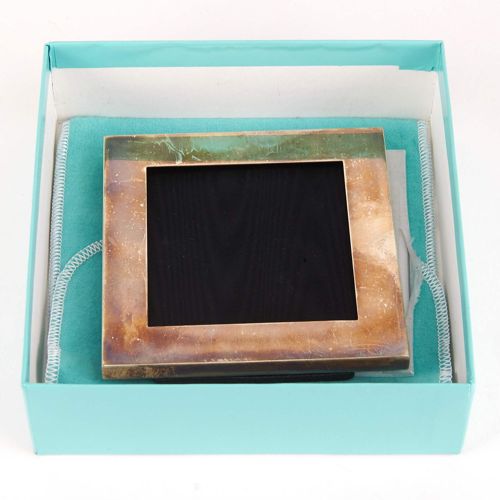 Стильная старинная серебряная рамка для фотографии, выполненная одной из самых известных ювелирных фирм в мире: «Tiffany & Co». Компания появилась в середине XIX века и сохраняет свою популярность до сих пор. Она приобрела известность благодаря невероятной красоте своих изделий, удачным маркетинговым решениям и исключительной, уникальной стилистике. Характерно, что рамка предназначена для квадратной фотографии, ставшей популярной вследствие появления автоматизированного фотоаппарата Polaroid, позволявшего делать снимки одним нажатием кнопки. Квадратные фотографии и в наши дни ассоциируются с винтажем. Хорошая сохранность, бренд, антиквариат. США, конец XX века.