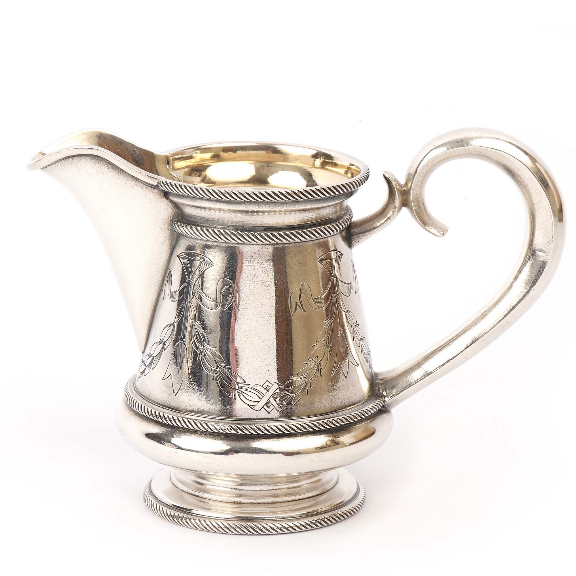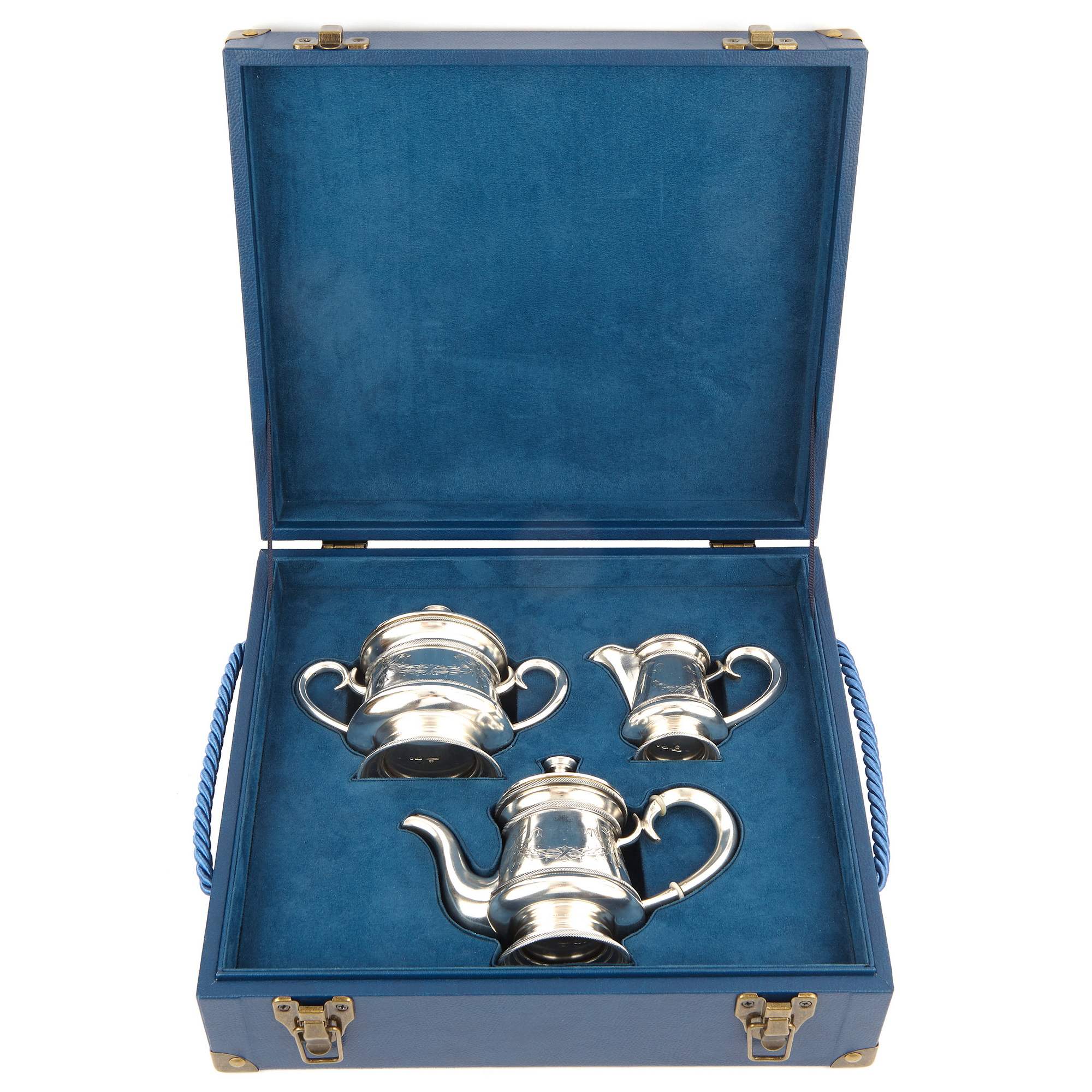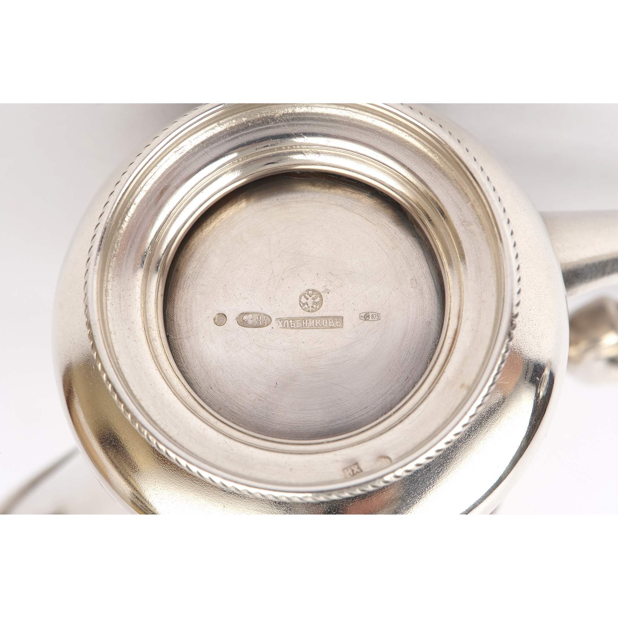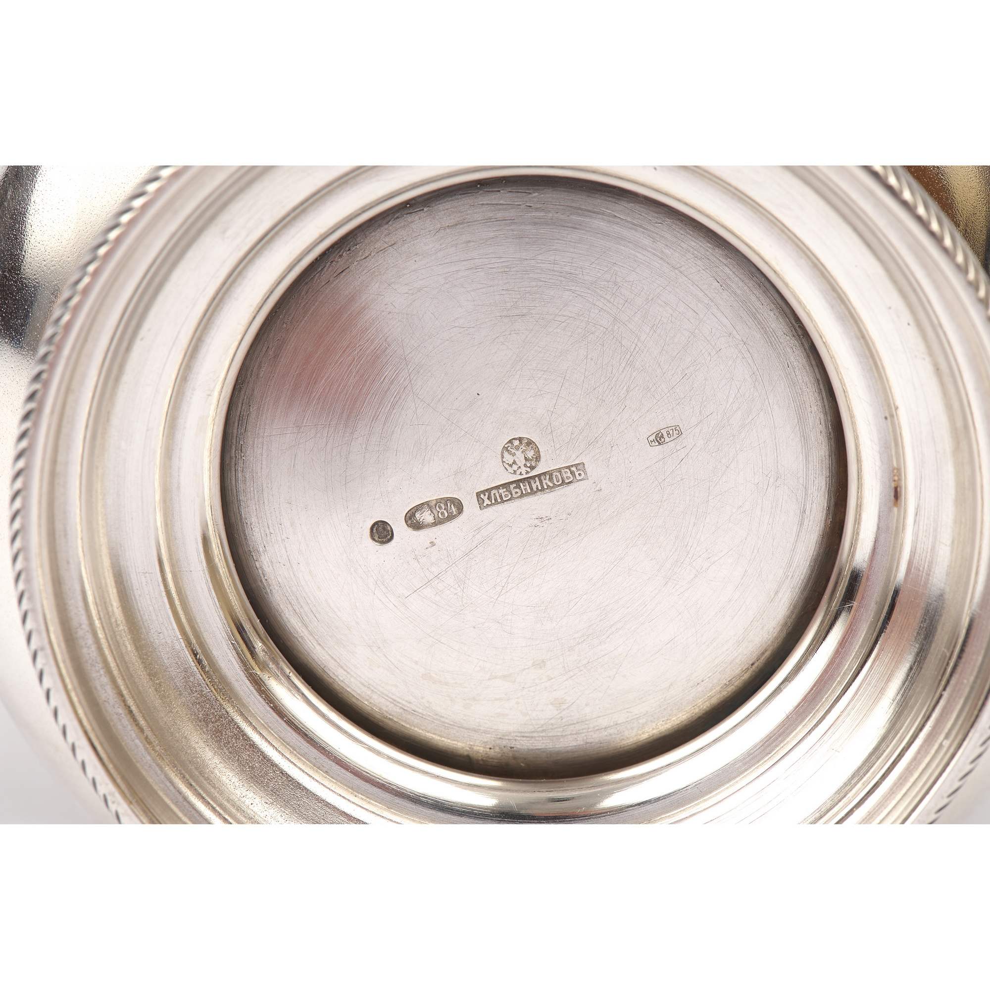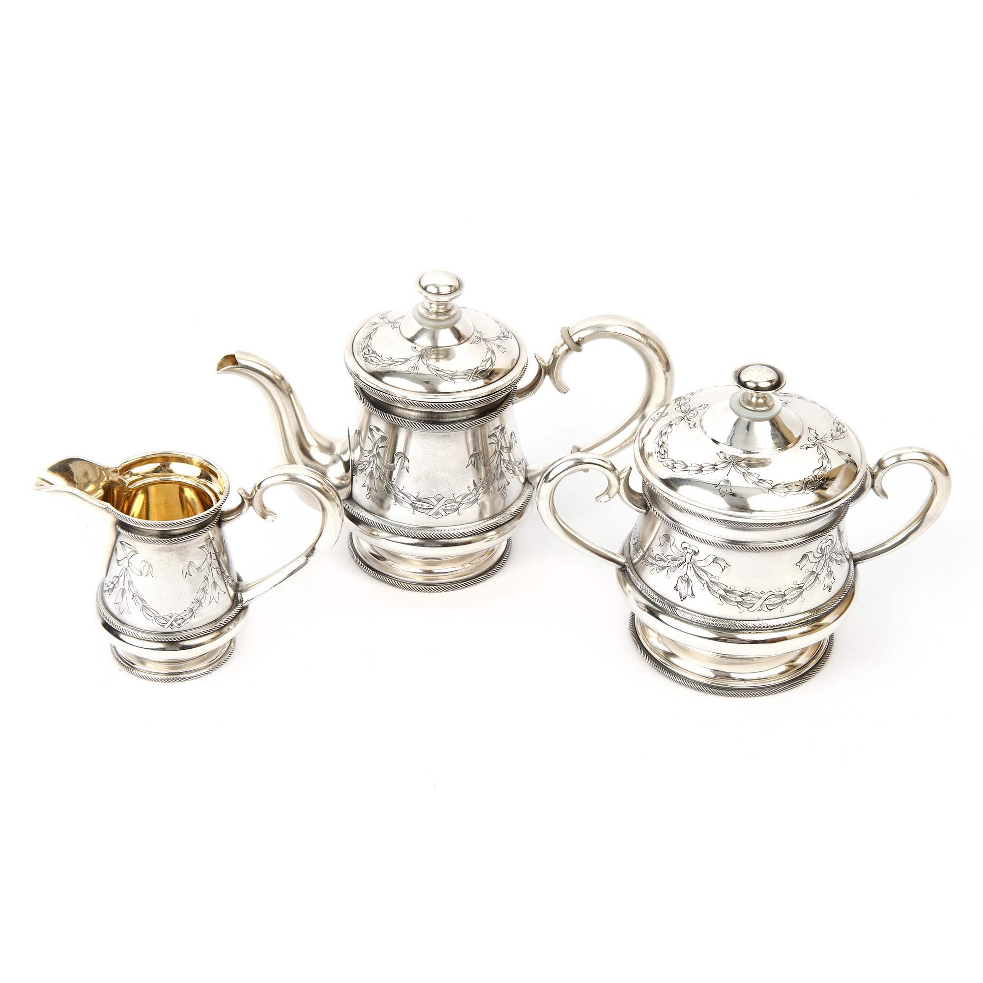 Замечательный старинный чайный сервиз из трех предметов. Работа известной ювелирной фабрики Хлебникова.