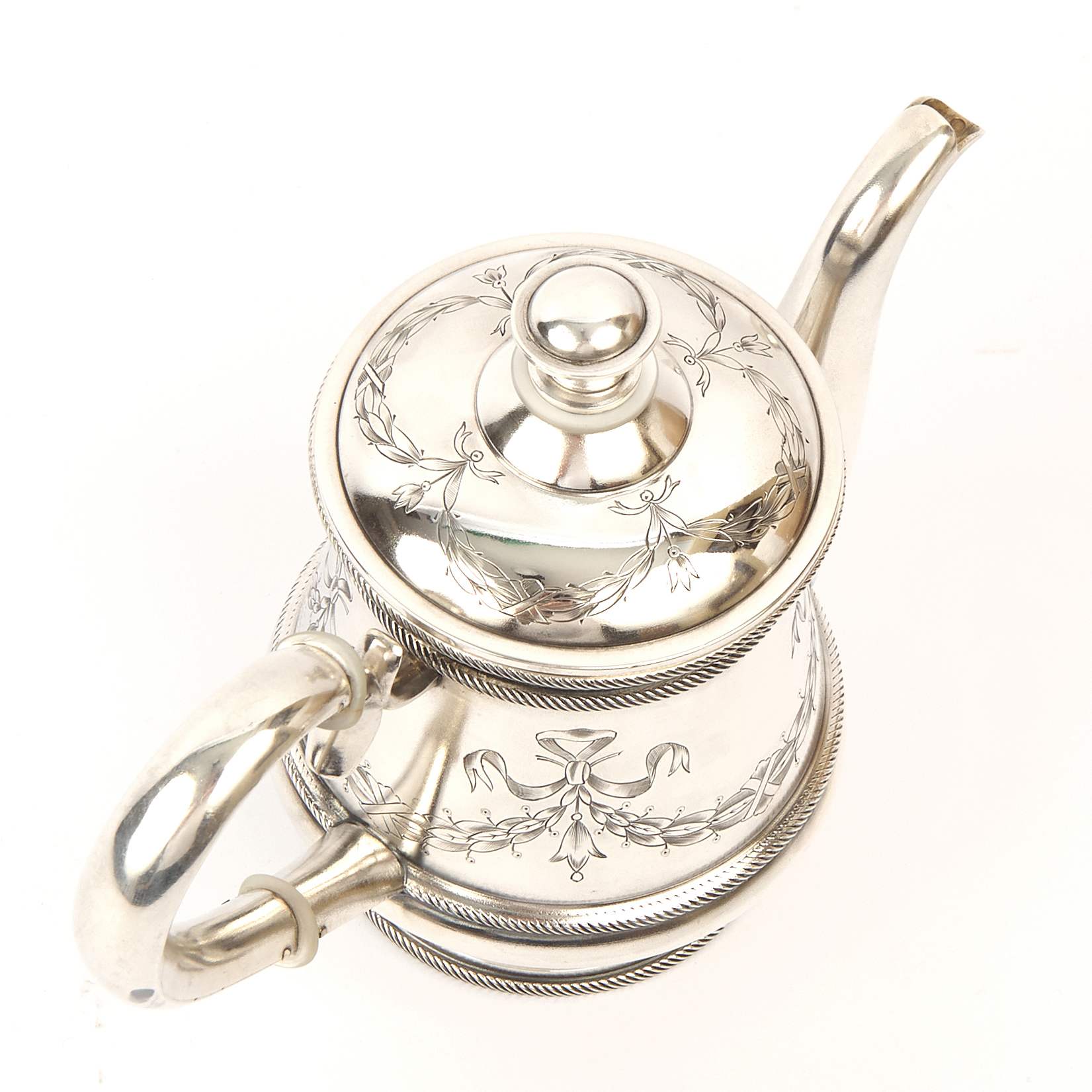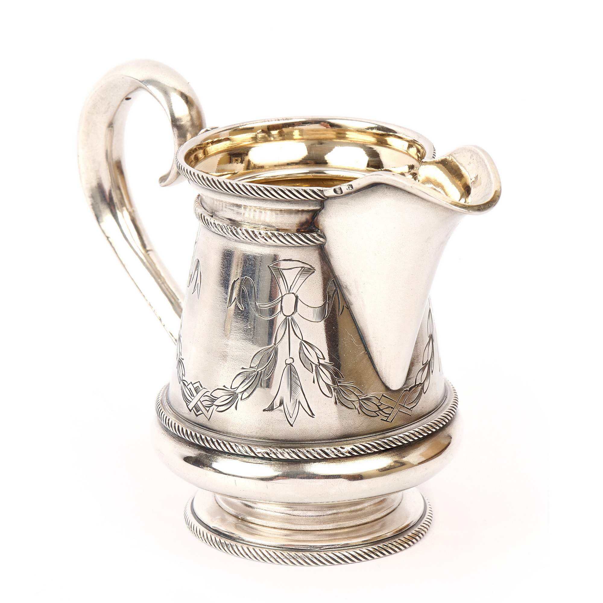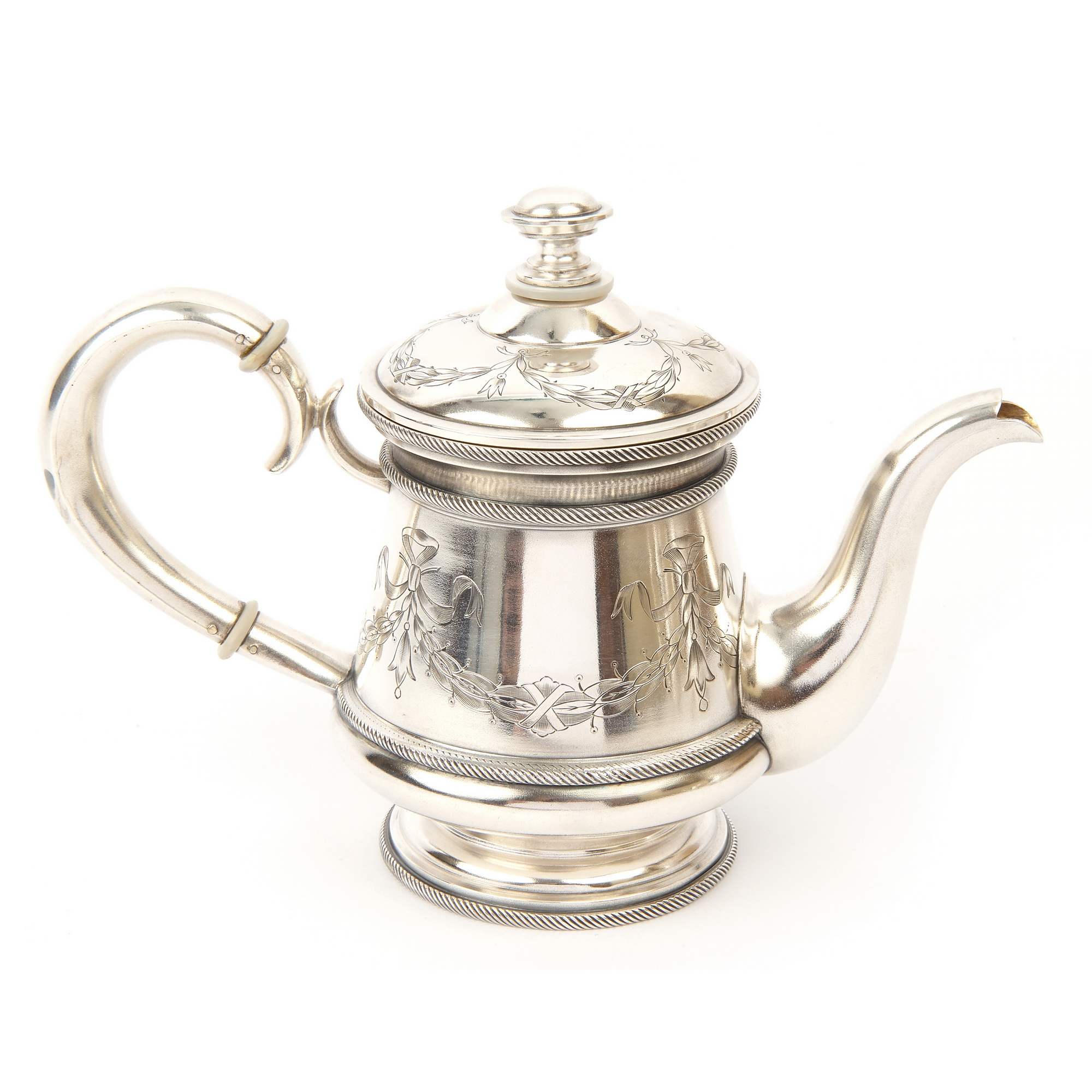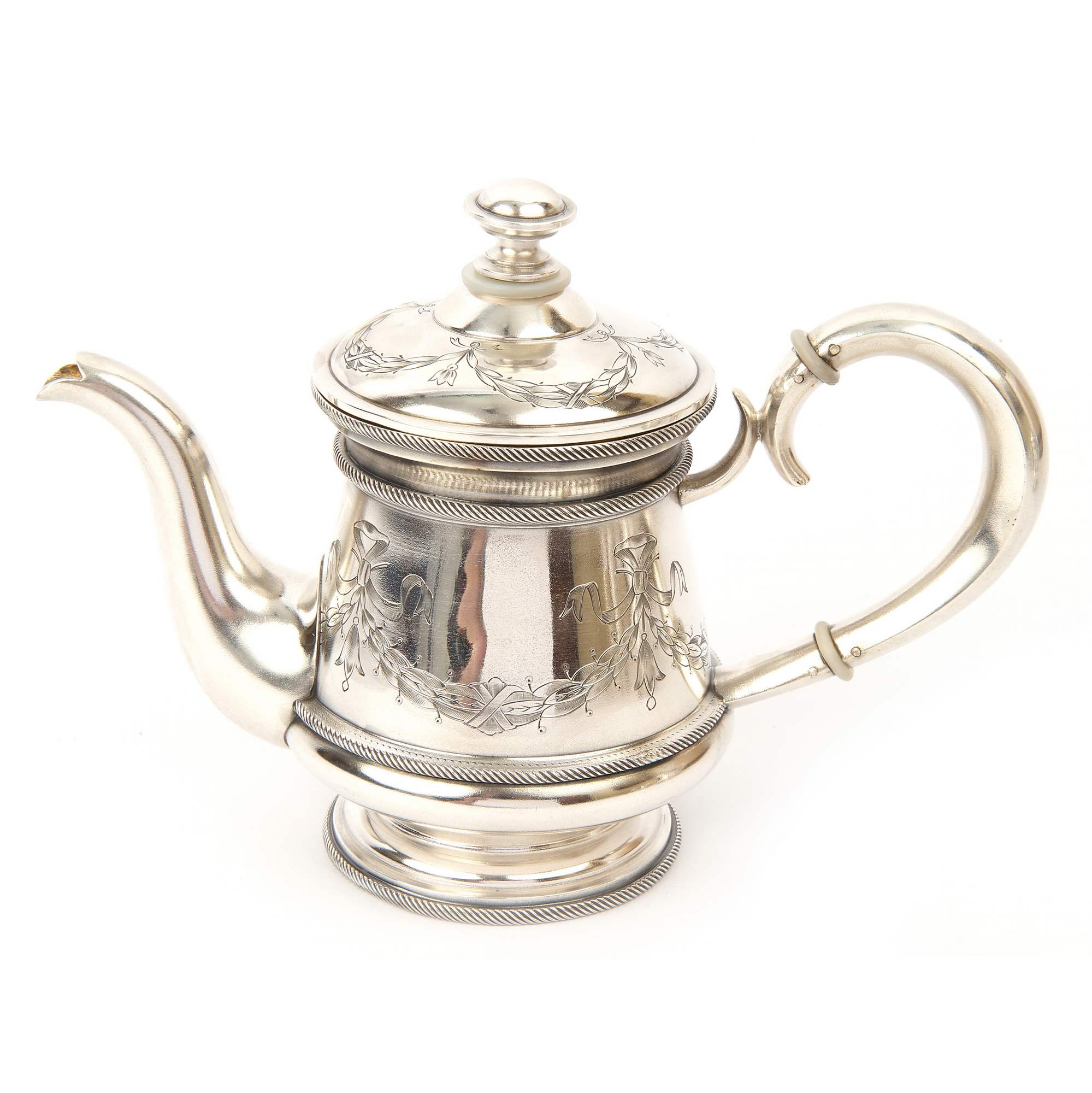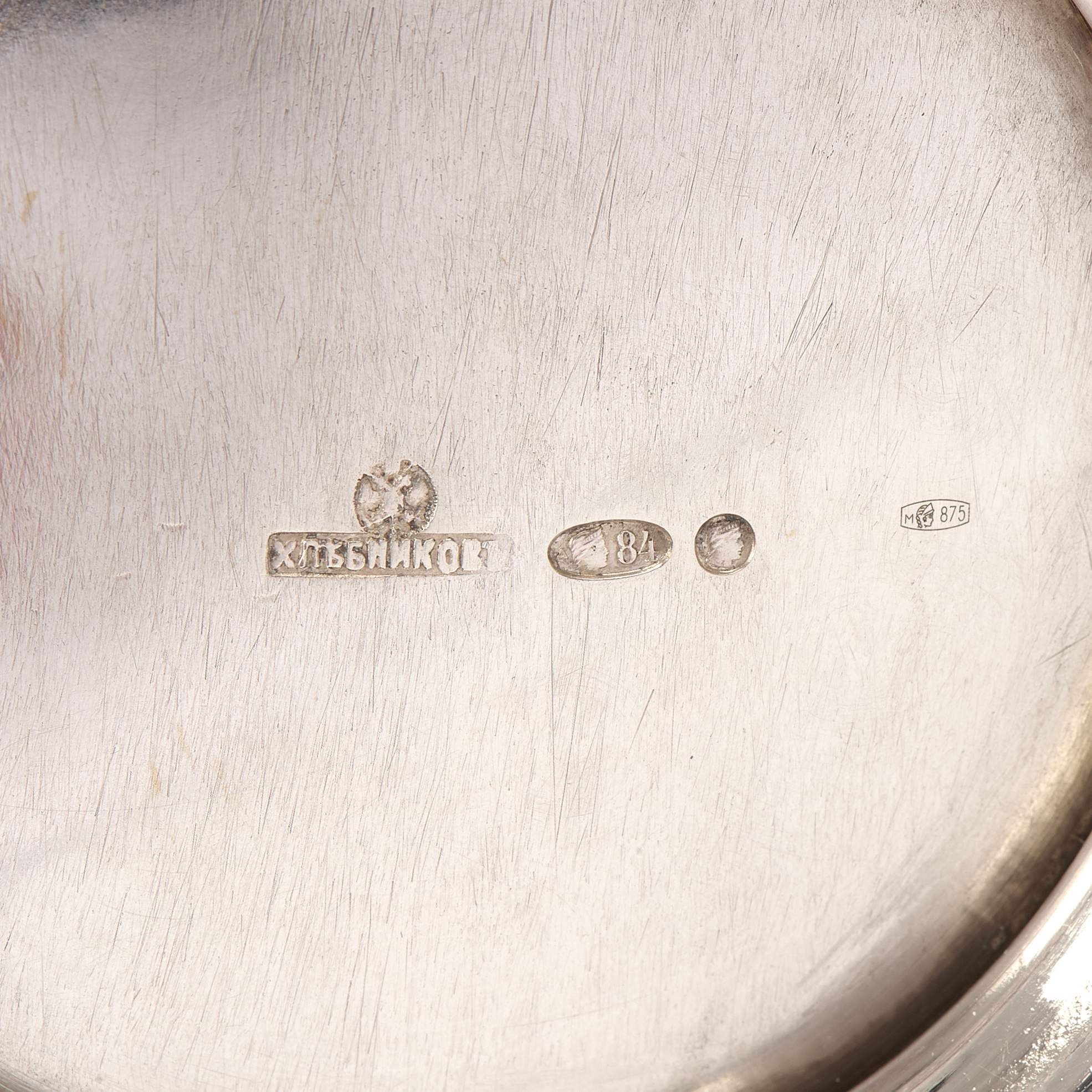 Замечательный старинный чайный сервиз из трех предметов. Работа известной ювелирной фабрики Хлебникова.