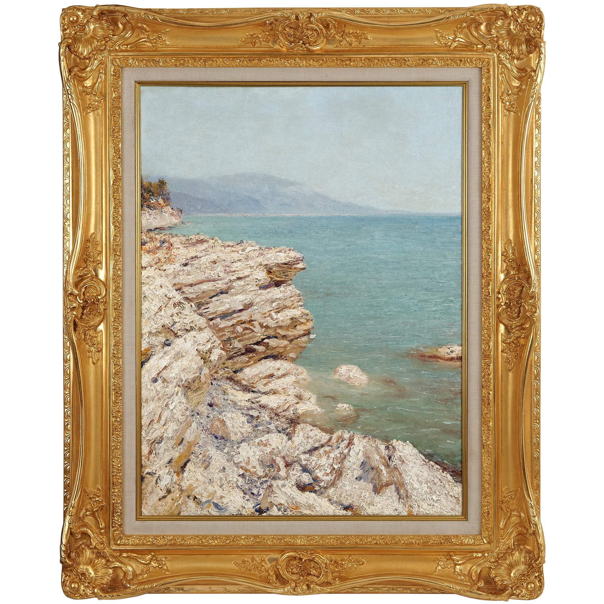 Замечательная картина с видом на скалистый берег моря близ Хосты, написанная знаменитым художником Дубовским Николаем Никаноровичем, чья подлинная подпись, а также дата написания полотна находятся на обороте. В представленной картине сочетаются грамотное построение красочного слоя и индивидуальная авторская манера исполнения, свидетельствующие о большом профессионализме художника. Пейзаж прописан подробно, со вниманием к деталям. Художник явно с любовью относился к красотам русской природы, а великолепию Хосты он посвятил несколько картин, одна из которых сейчас находится в Русском Музее. Стоит отметить, что город-курорт в начале 20-го века только начинал развиваться, работ того времени, посвященных Хосте, Сочи, написанных мастерами такого уровня встречается крайне мало, а на антикварном рынке их практически нет. Большая часть картин этой серии художника хранится в Новочеркасском музее истории донского казачества. Художник и сам происходил из семьи донских казаков. Представленная картина является раритетом. Создал это замечательное и редкое полотно Дубовской Николай Никанорович - выдающийся русский живописец, пейзажист. Окончил пейзажный класс в Императорской Академии художеств. За «известность на художественном поприще» он был удостоен звания академика пейзажной живописи в 1898 году. С 1911 года стал профессором-руководителем пейзажной мастерской Высшего художественного училища при Академии художеств. Дубовской Н. Н. неоднократно участвовал во всероссийских и международных выставках. На Всемирной выставке 1900 года за свои полотна Николай Никанорович был удостоен серебряной медали. На Международной выставке 1913 года его наградили золотой медалью. Персональная же выставка художника состоялась в Государственном Русском Музее в 1938 году. Его работы хранятся в крупнейших музейных собраниях, таких как Русский Музей, Третьяковская Галерея, а также в частных коллекциях.