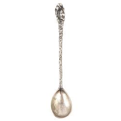 Красивая старинная чайная ложка с изображением двух мишек, играющих на разветвленном дереве. Мастер блестяще воссоздает фактуру дерева, по которому лазают медвежата, искусно создавая декоративный и даже смешной образ. Следует сказать, что не смотря на фигурку медведя ложка исключительно удобна в использовании. Отличная сохранность, антиквариат.