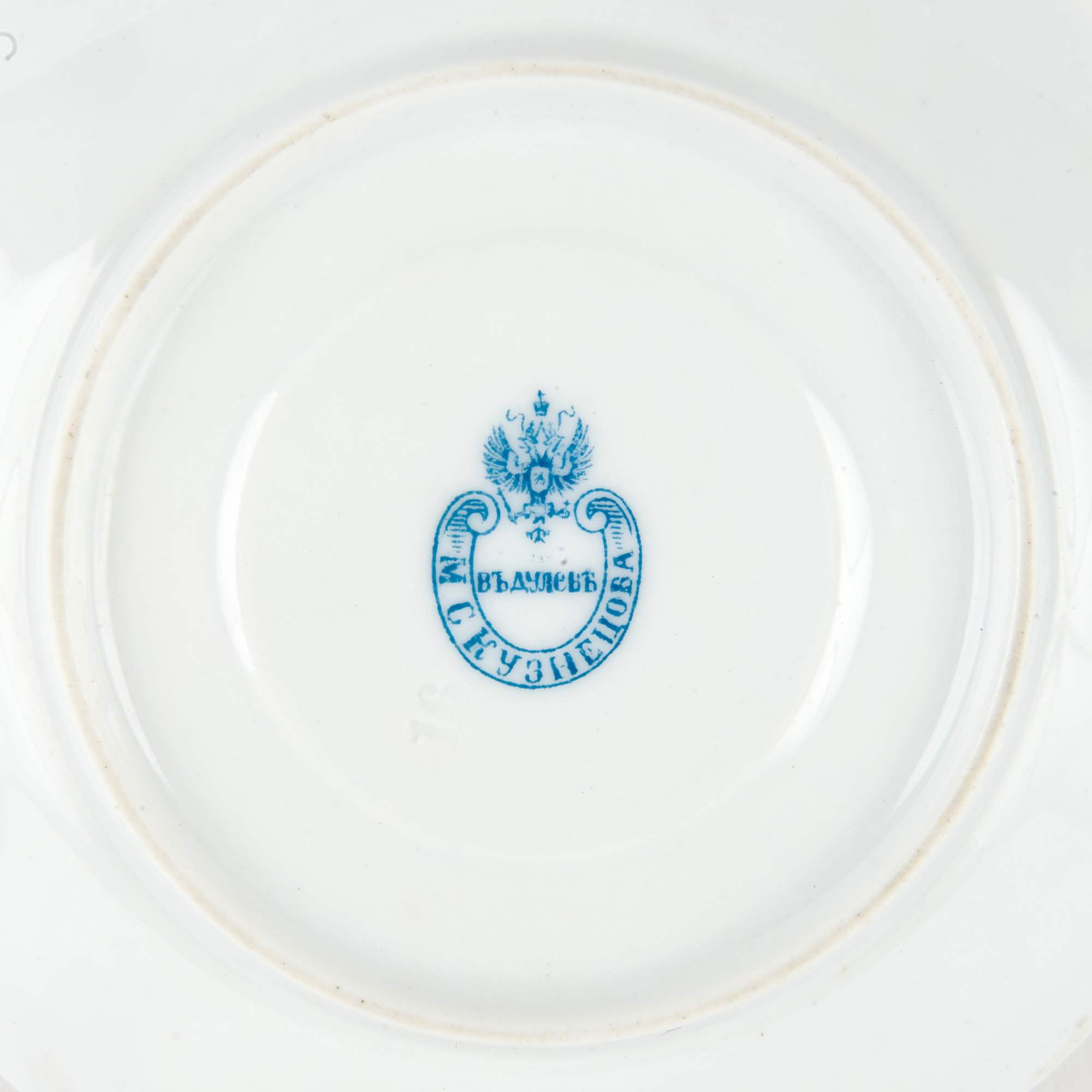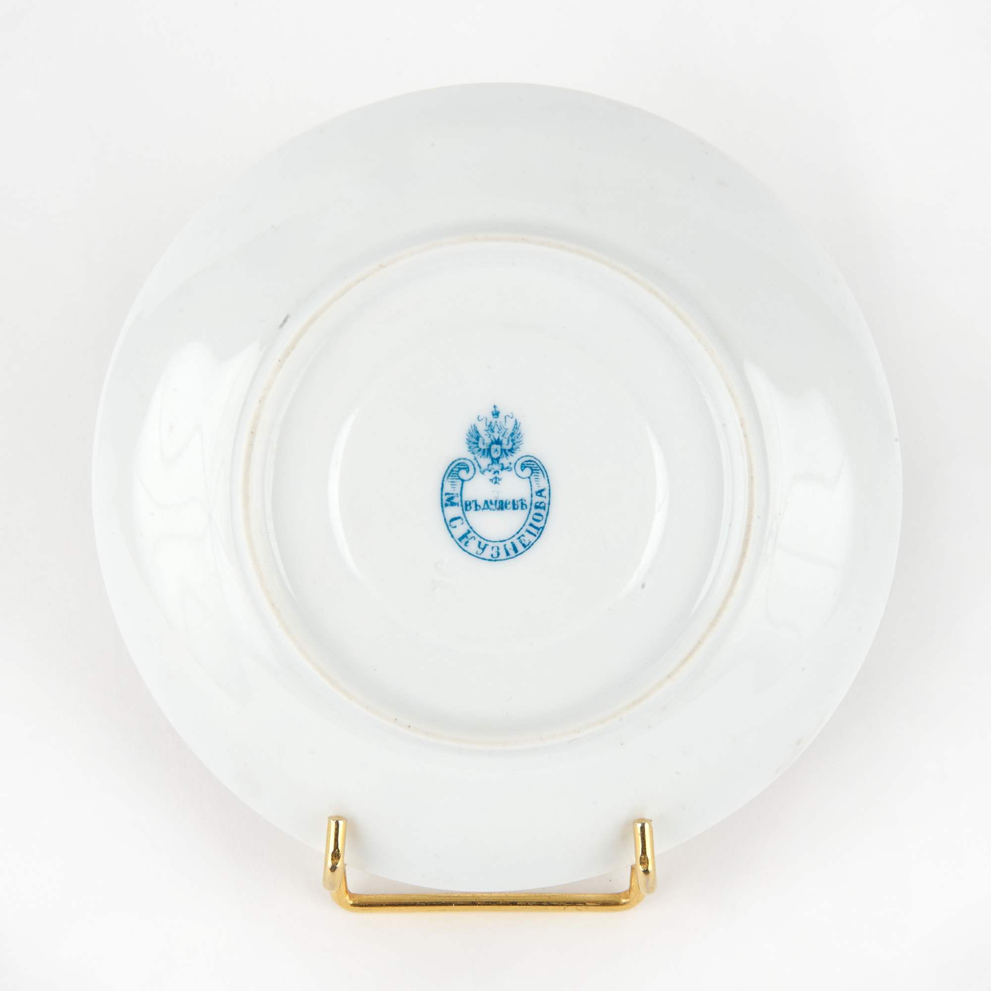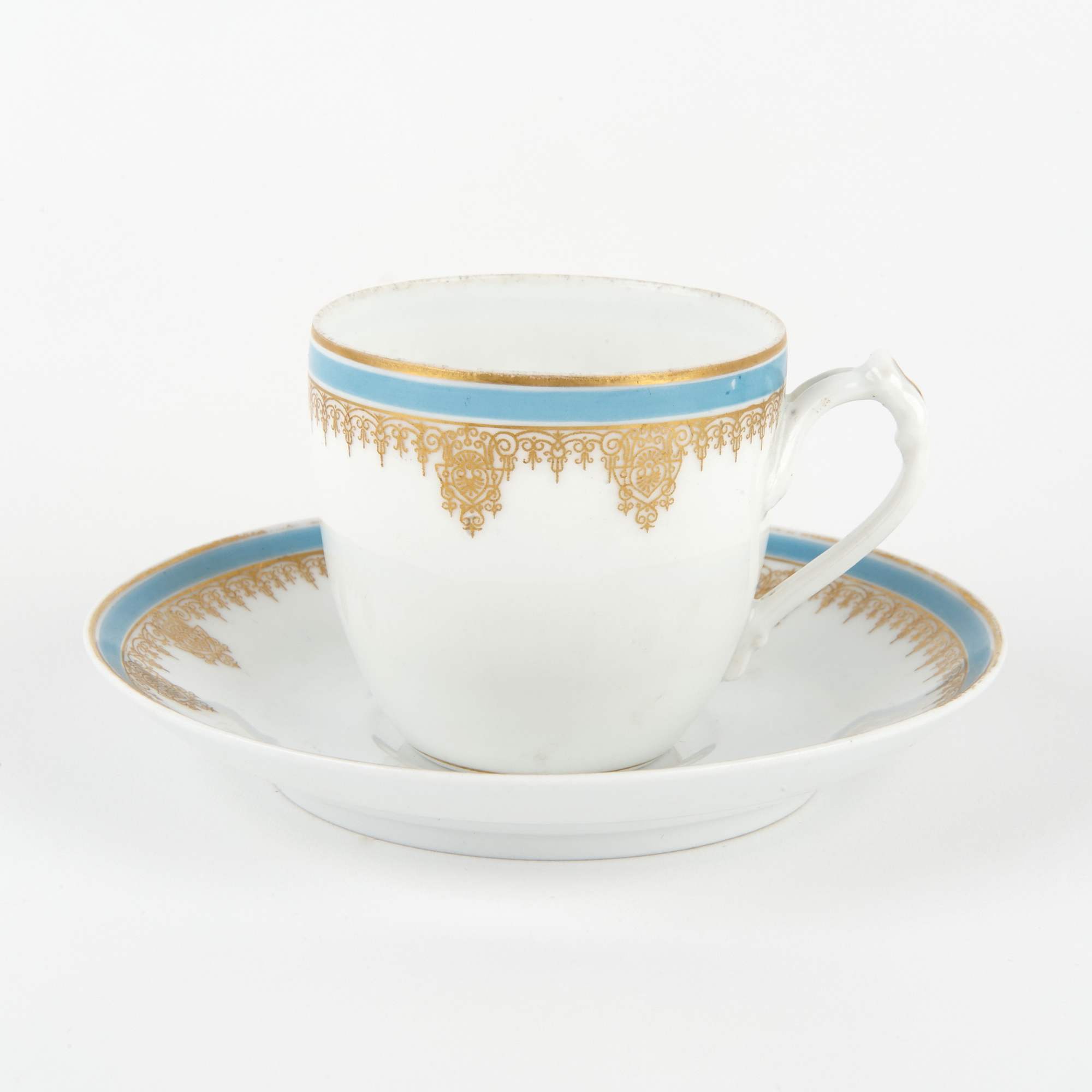 Россия. Дулёво. Завод Кузнецова. Фарфор, золочение. Чашка: Высота - 5,9 см, Диаметр - 6,2 см. Блюдце - Диаметр - 12,7 см.