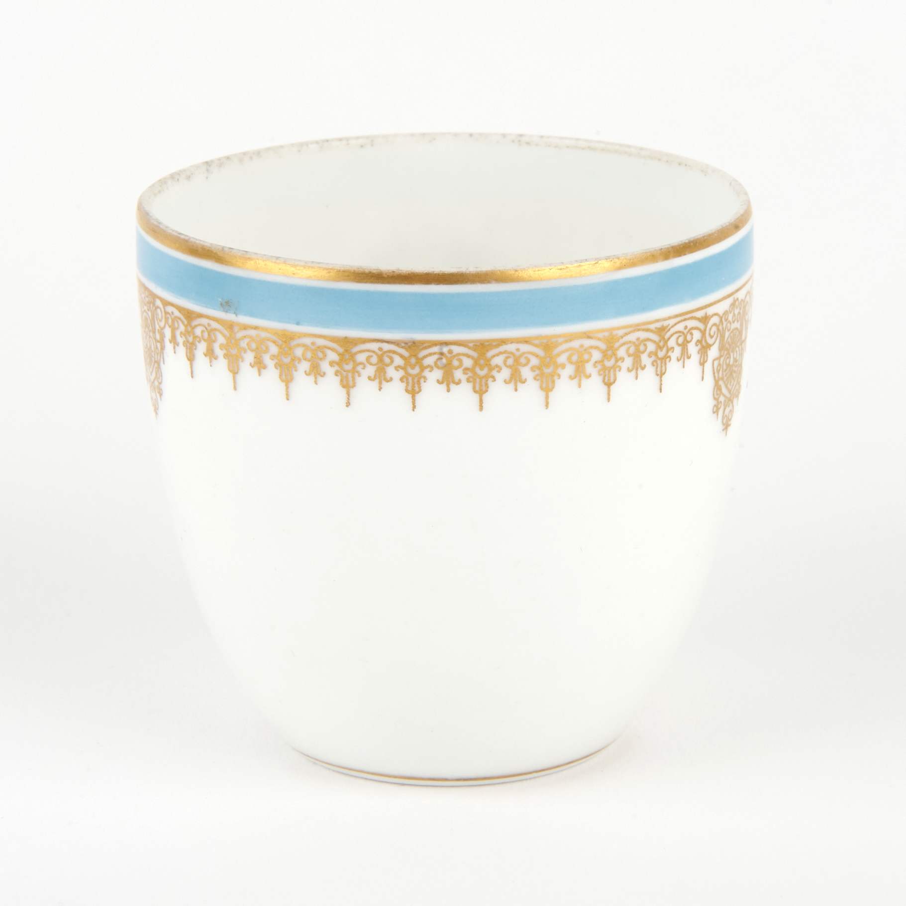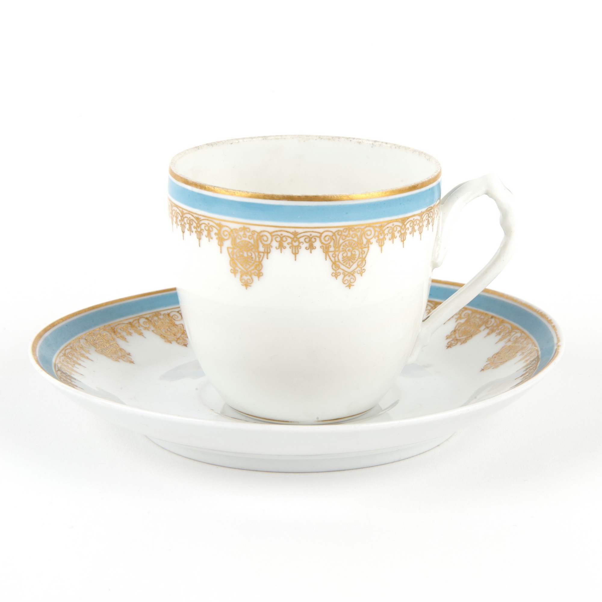 Россия. Дулёво. Завод Кузнецова. Фарфор, золочение. Чашка: Высота - 5,9 см, Диаметр - 6,2 см. Блюдце - Диаметр - 12,7 см.