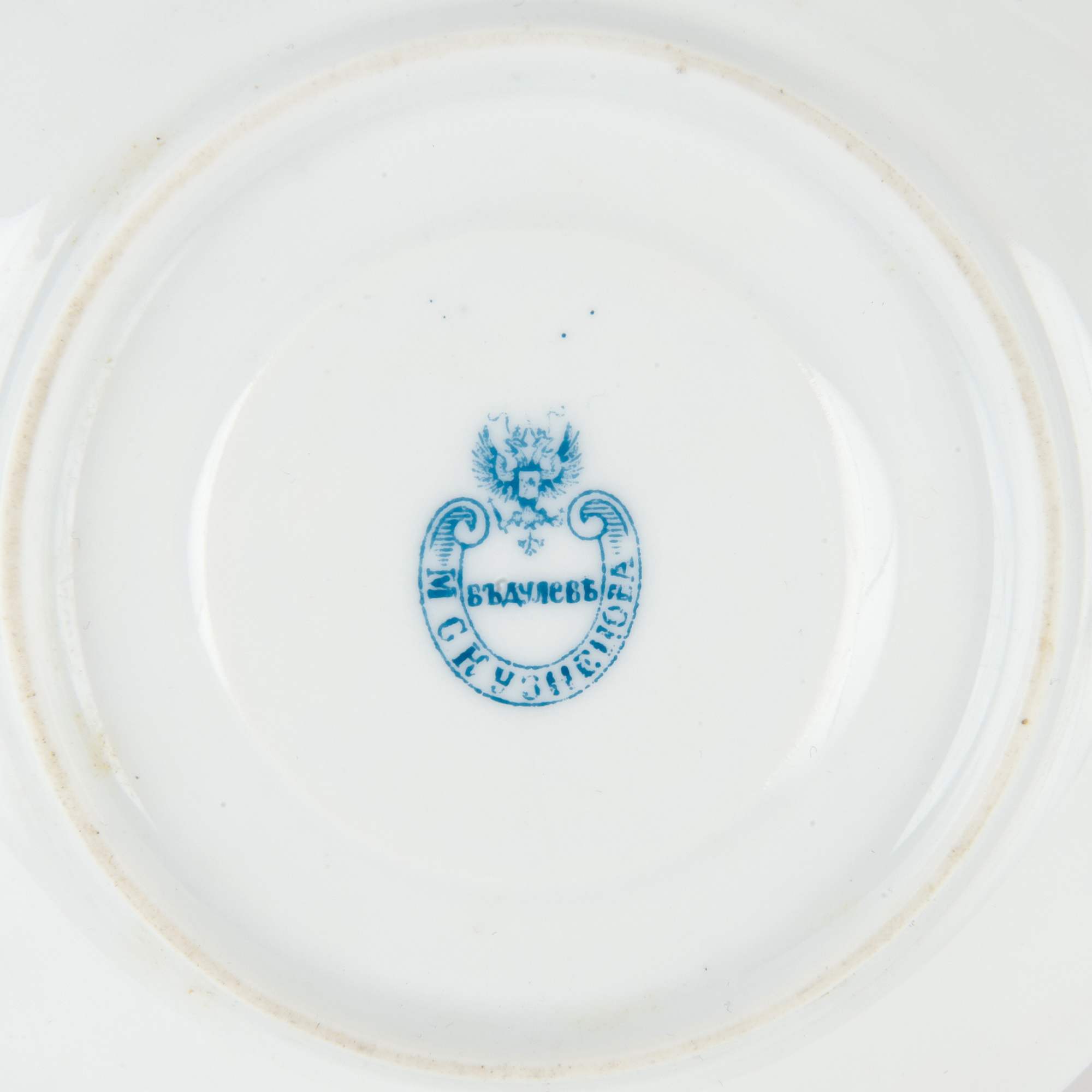 Россия. Дулёво. Завод Кузнецова. Фарфор, золочение. Чашка: Высота - 5,9 см, Диаметр - 6,2 см. Блюдце - Диаметр - 12,7 см.