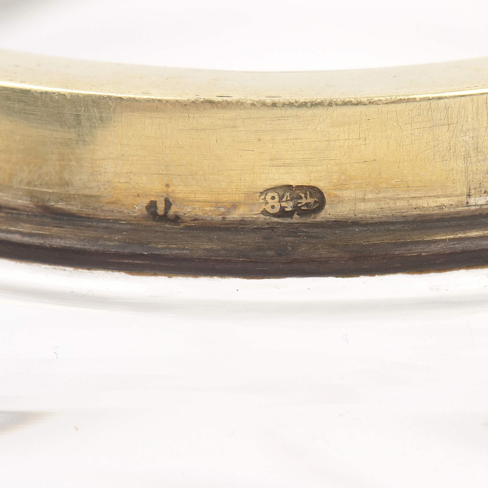 Стекло, гравировка. Серебро 84 пробы, литье, золочение, живописная эмаль.