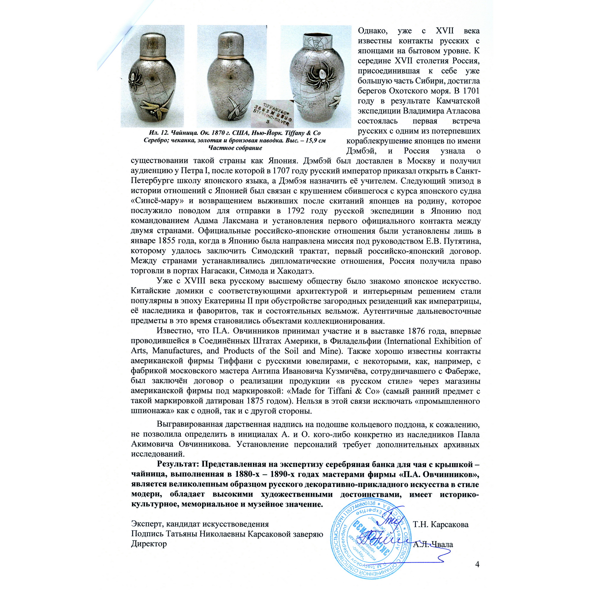 Экспертное заключение НИНЭ имени П. М. Третьякова.