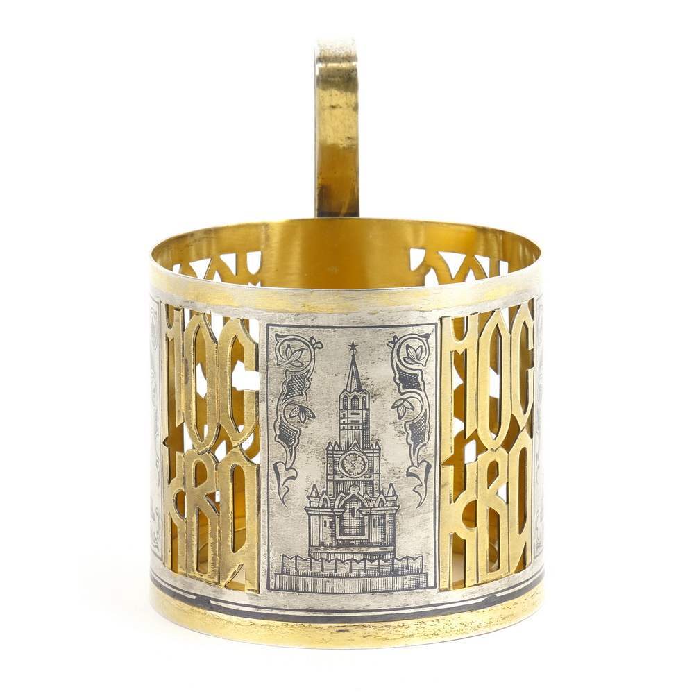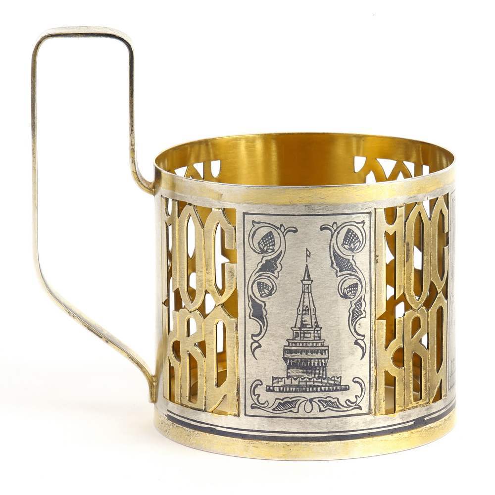 Советский подстаканник с изображением символов страны башен Московского Кремля. Подстаканник изготовлен в 1970-80-е года московскими ( советскими ) ювелирами. Отличная сохранность. Прилагается специальный стеклянный стакан ( держит кипяток ).